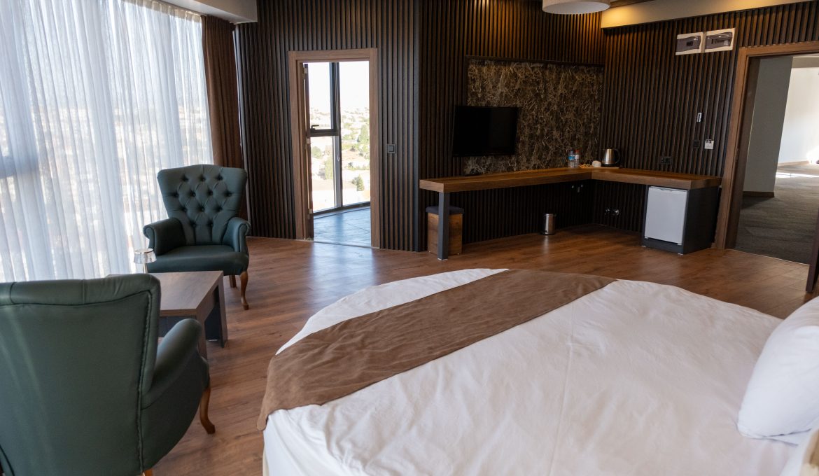 Özel tasarımı, geniş yaşam alanı ve üstün donanımıyla fark yaratan VIP Odamız, lüksü ve konforu en üst seviyede yaşamak isteyen misafirlerimiz için özenle hazırlanmıştır. Zarif detaylarla dekore edilmiş bu özel oda, hem iş seyahatlerinizde hem de özel konaklamalarınızda benzersiz bir deneyim sunar.