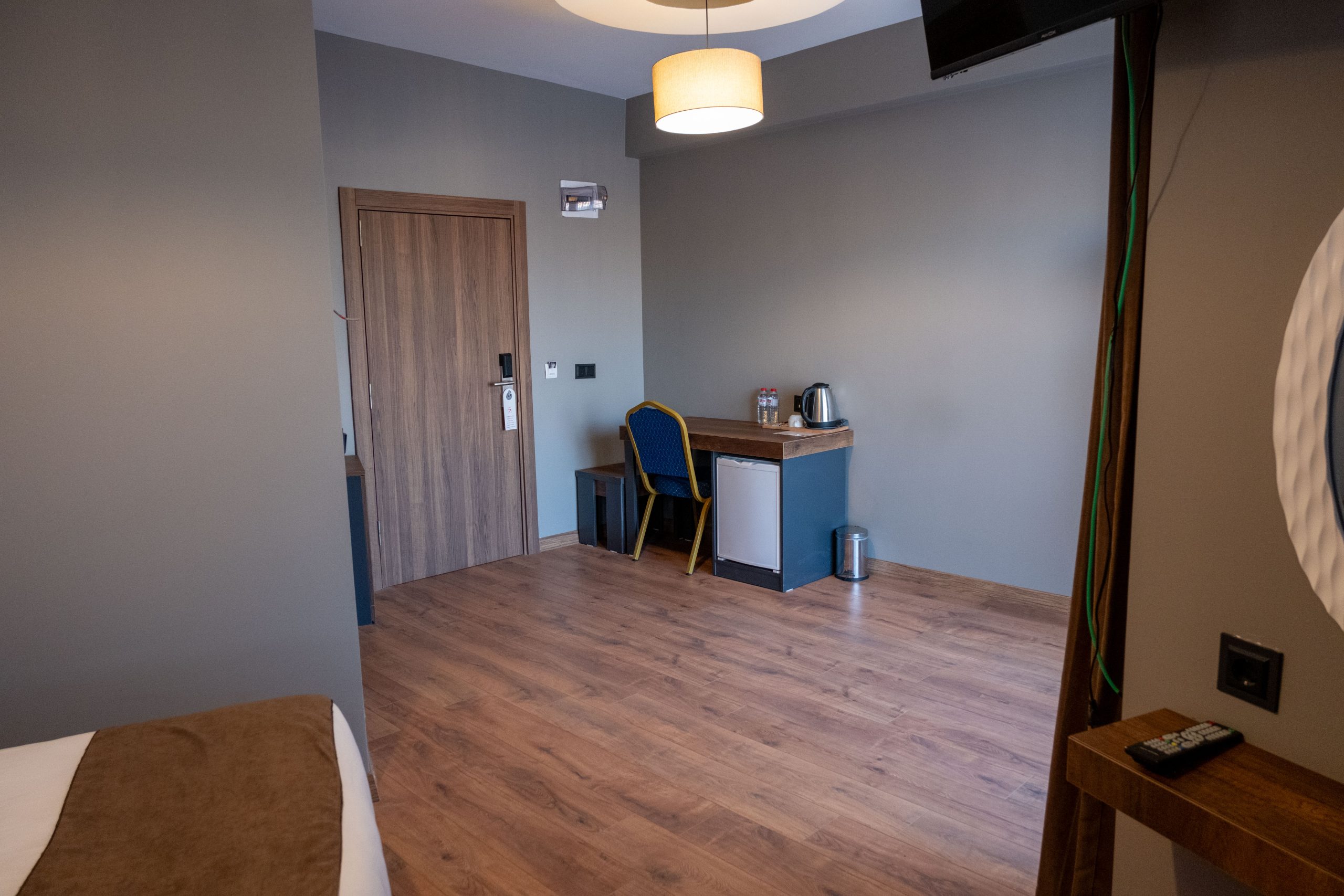 Konforlu ve işlevsel bir konaklama deneyimi sunan Standart Tek Kişilik Odamız, özellikle iş seyahatinde olan misafirlerimiz için ideal bir tercihtir. Modern ve sade bir tasarıma sahip olan odada bir adet tek kişilik yatak, çalışma masası, ücretsiz Wi-Fi, düz ekran TV, minibar ve klima bulunmaktadır. Özel banyosu, duş, saç kurutma makinesi ve temel banyo malzemeleriyle donatılmıştır. Sessiz ve huzurlu bir ortamda dinlenmek isteyen misafirlerimiz için mükemmel bir seçimdir.